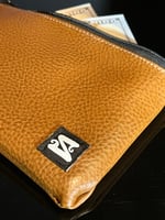 Locally made Bespoke Bank Bag with my signature embroidered labels sewn on each side. This is my favorite style of cash bag with the best zipper for the smooth action and quality that your loot deserves. Each bag has its own unique look and are made one at a time by Psylocybin the Seamster.