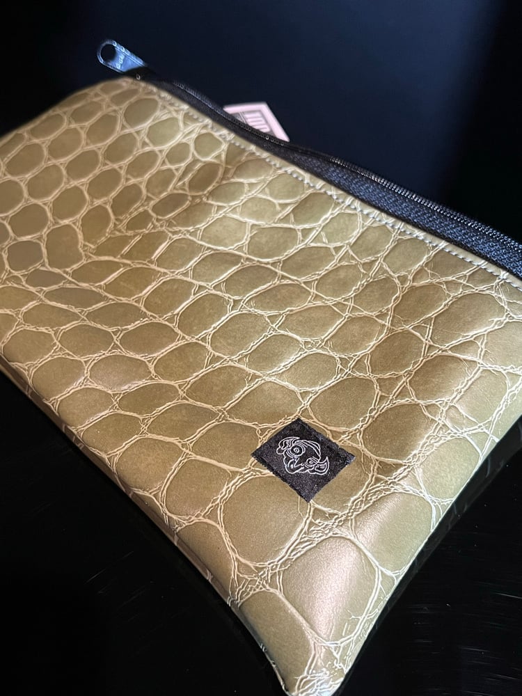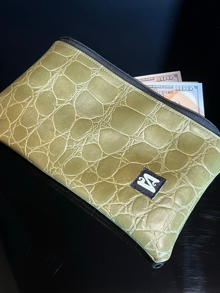 Locally made Bespoke Bank Bag with my signature embroidered labels sewn on each side. This is my favorite style of cash bag with the best zipper for the smooth action and quality that your loot deserves. Each bag has its own unique look and are made one at a time by Psylocybin the Seamster.